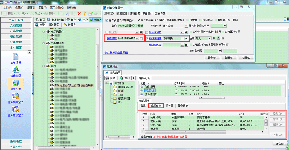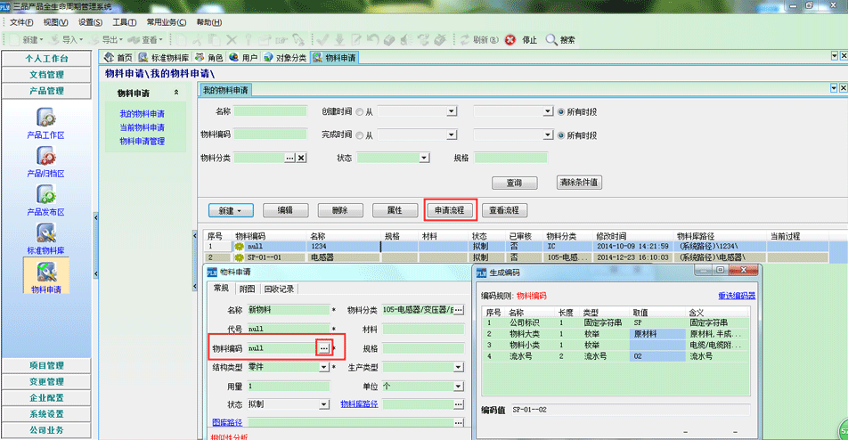 傲派的標(biāo)準(zhǔn)件種類繁多、數(shù)量龐大,三品軟件細(xì)致劃分不同種類的標(biāo)準(zhǔn)件并且綁定不同的編碼規(guī)則以及審核流程;當(dāng)需要新增的標(biāo)準(zhǔn)件時,三品軟件通過【物料申請】模塊進(jìn)行物料申請,并根據(jù)此類物料所綁定編碼器的編碼規(guī)則,自動編制具有唯一性的物料編碼,創(chuàng)建新物料完成之后,可便捷的啟動新物料所需的審核流程,然后自動歸檔存庫。