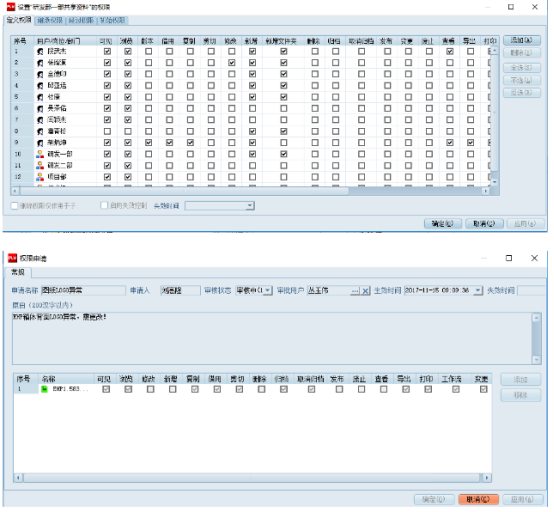 2、嚴(yán)密的全系體系管理,針對(duì)模塊、文件夾、文件均可分配權(quán)限,可定義權(quán)限包含21項(xiàng)之多,多角度多維度控制文件的安全;權(quán)限申請(qǐng)機(jī)制,主管可靈活配置員工權(quán)限需求,并且能夠有據(jù)可查。