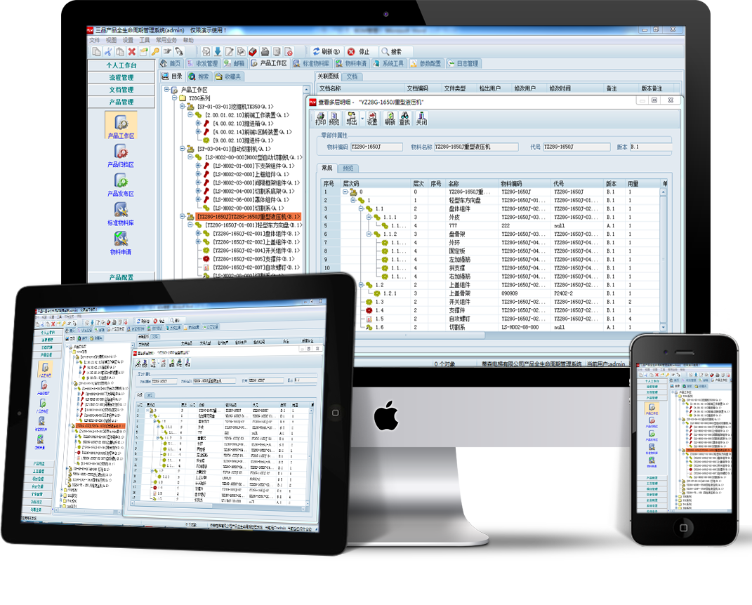 三品PDM系統(tǒng)能夠搭建零部件屬性特征體系,對每個零部件進行規(guī)范且有效的描述,并依據(jù)零部件屬性開展分類管理。通過建立企業(yè)全量零部件(涵蓋專用件、通用件、標(biāo)準(zhǔn)件)的層次結(jié)構(gòu)與屬性信息庫,構(gòu)建產(chǎn)品設(shè)計所需的基礎(chǔ)數(shù)據(jù)資源,從而有效減少零部件重復(fù)設(shè)計現(xiàn)象,推動零部件重用,提升通用化水平。設(shè)計人員借助系統(tǒng)強大的檢索功能,可快速查找、引用歷史數(shù)據(jù)來搭建新產(chǎn)品,進而提高產(chǎn)品開發(fā)質(zhì)量與效率。