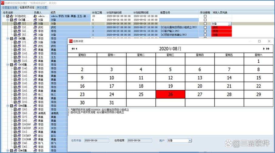 項目經(jīng)理調(diào)用模板,快速形成項目計劃,維護(hù)項目資源時,智能顯示項目任務(wù)沖突,及時調(diào)整任務(wù)責(zé)任人。