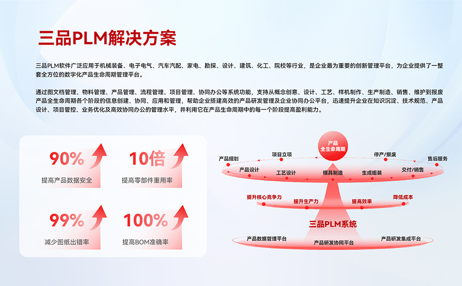 三品PLM系統(tǒng)是一款全面而高效的產(chǎn)品生命周期管理軟件,廣泛應用于機械裝備、電子電氣、汽車汽配、食品化工、航空航天等多個行業(yè)。其部署方式和優(yōu)勢如下: