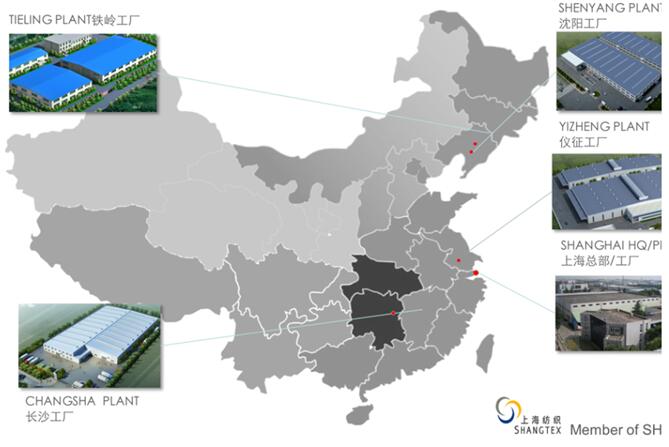 上海汽車地毯總廠有限公司在中國擁有六個(gè)直屬工廠和7個(gè)合資公司.全國各地共18個(gè)工廠。